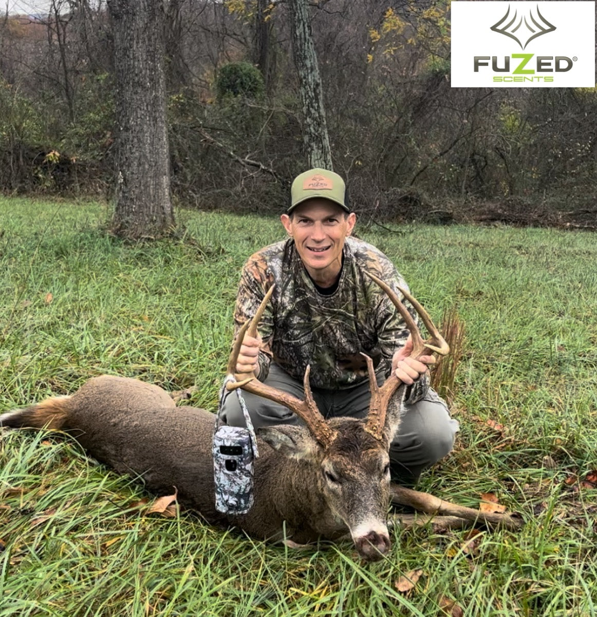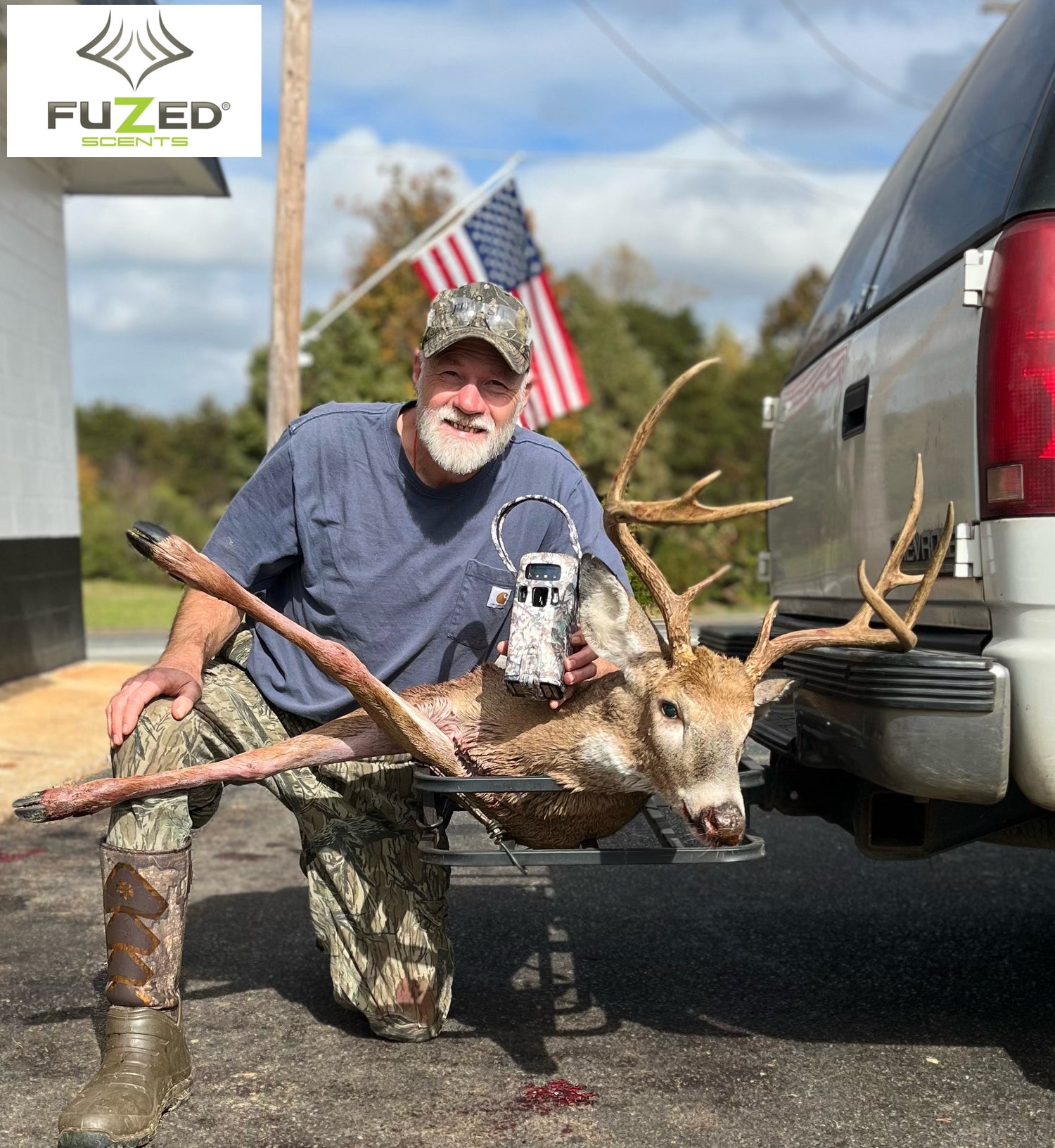 Rusty has been a long-time user of aerosol scents in timed sprayers and killed this great buck in the 2024 deer season!